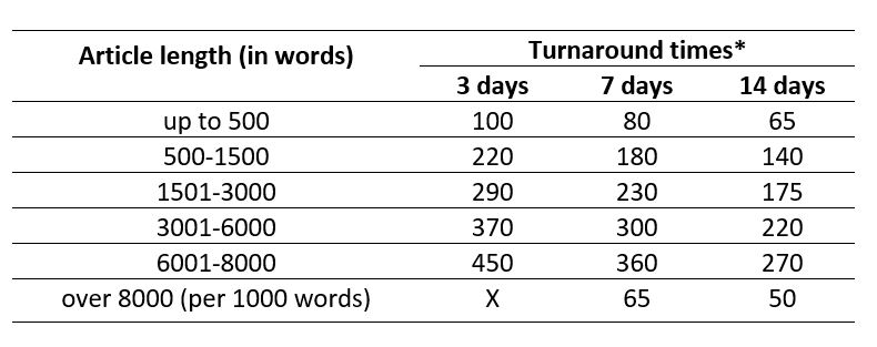 Article length: includes all parts of the manuscript except the reference/bibliography section (which is not edited unless specifically requested).